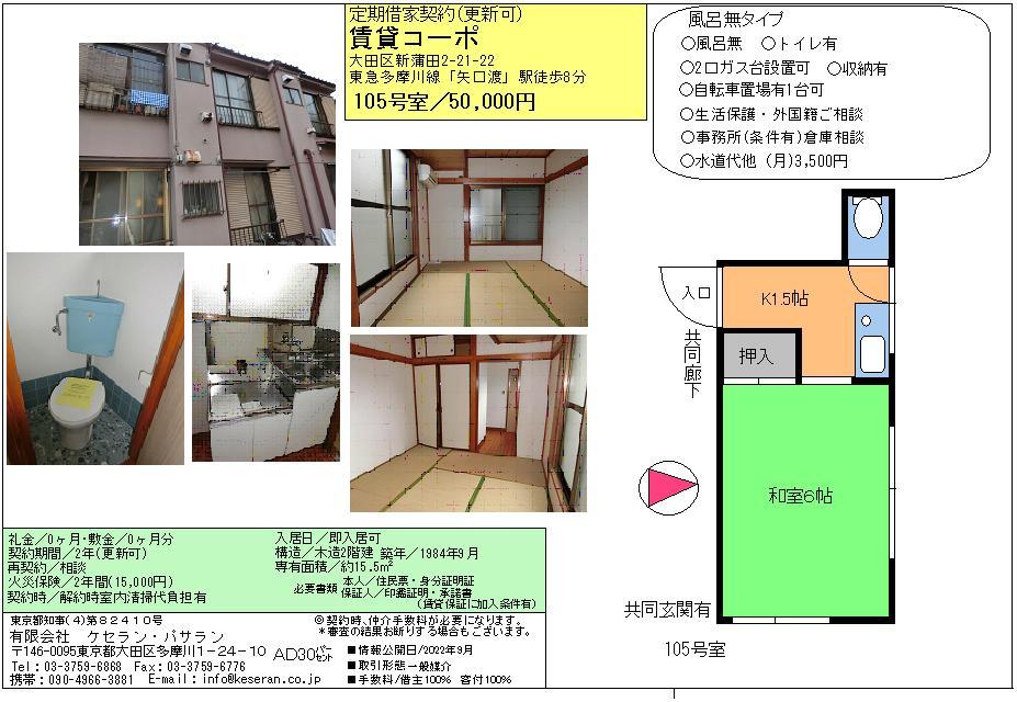 9/17 1K 風呂付最安 久が原